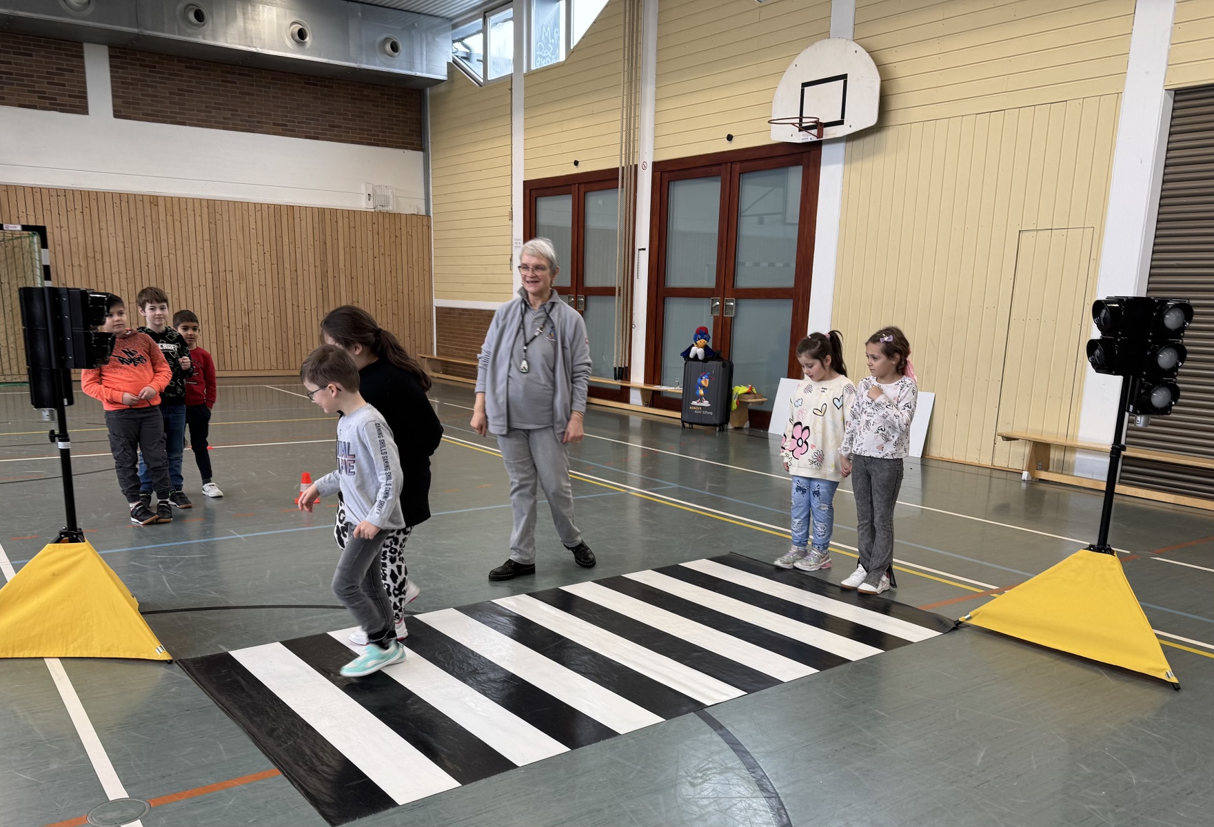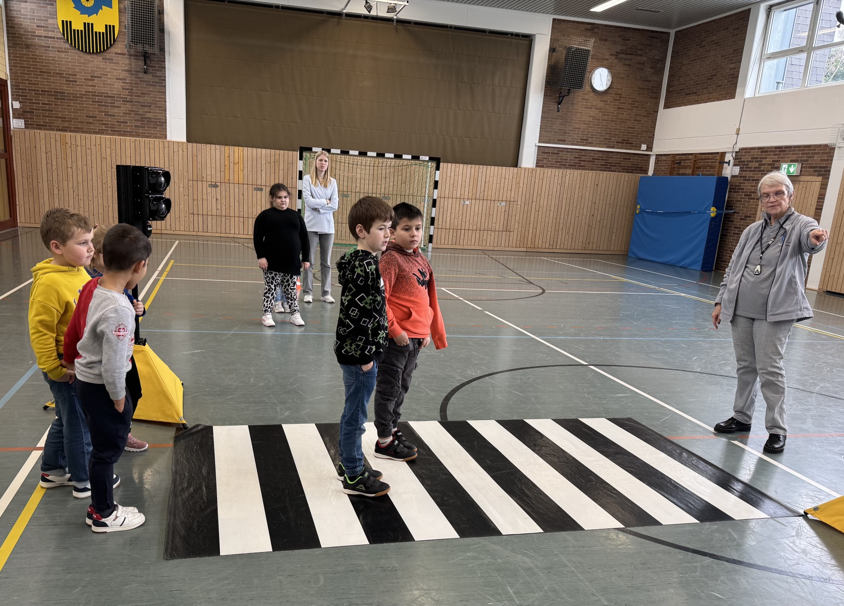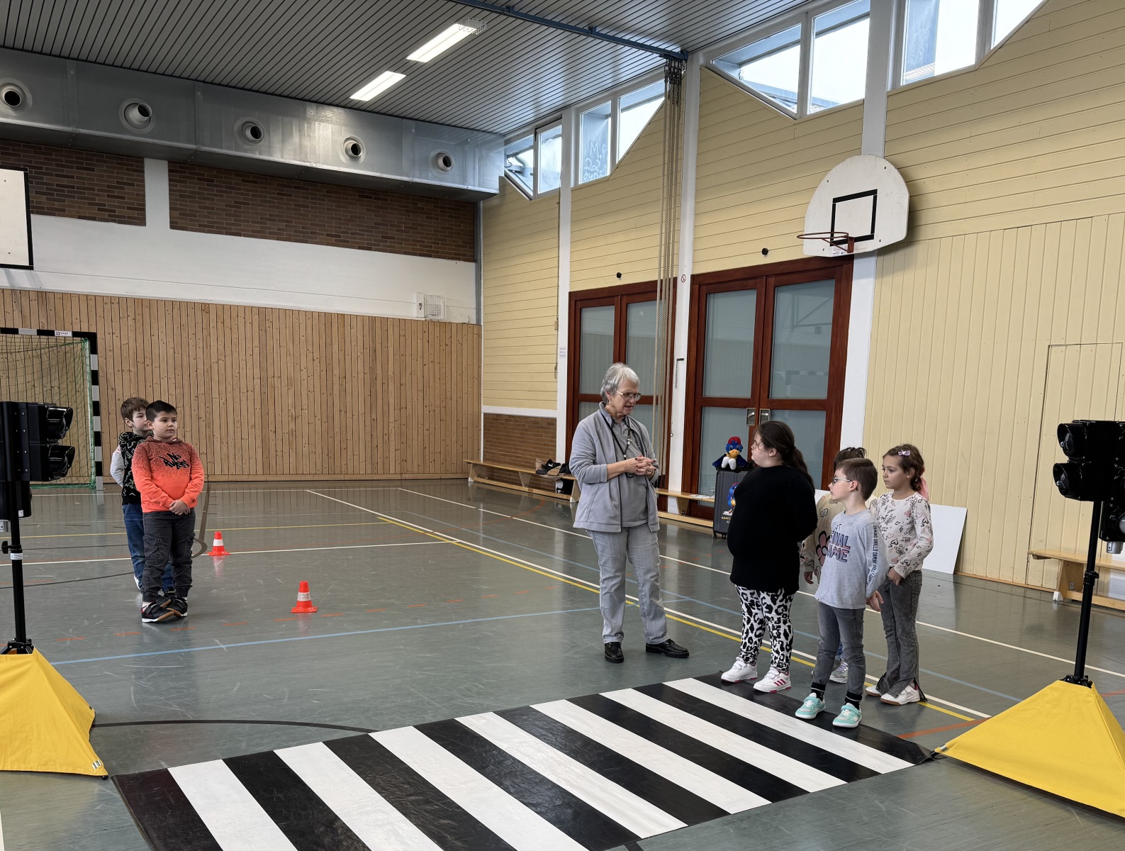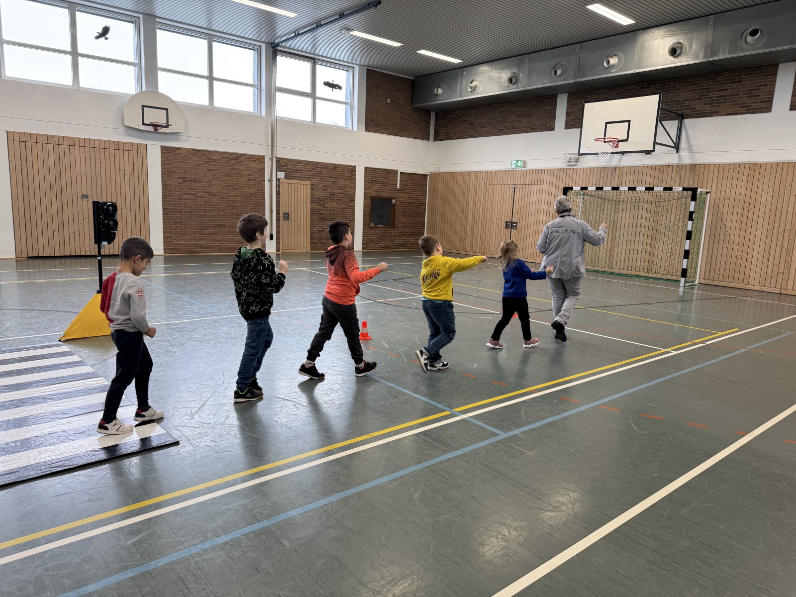 Mit viel Bewegung, Freude und interaktiven Übungen zeigte die Moderatorin den Kindern, wie sie sich sicher im Straßenverkehr verhalten.