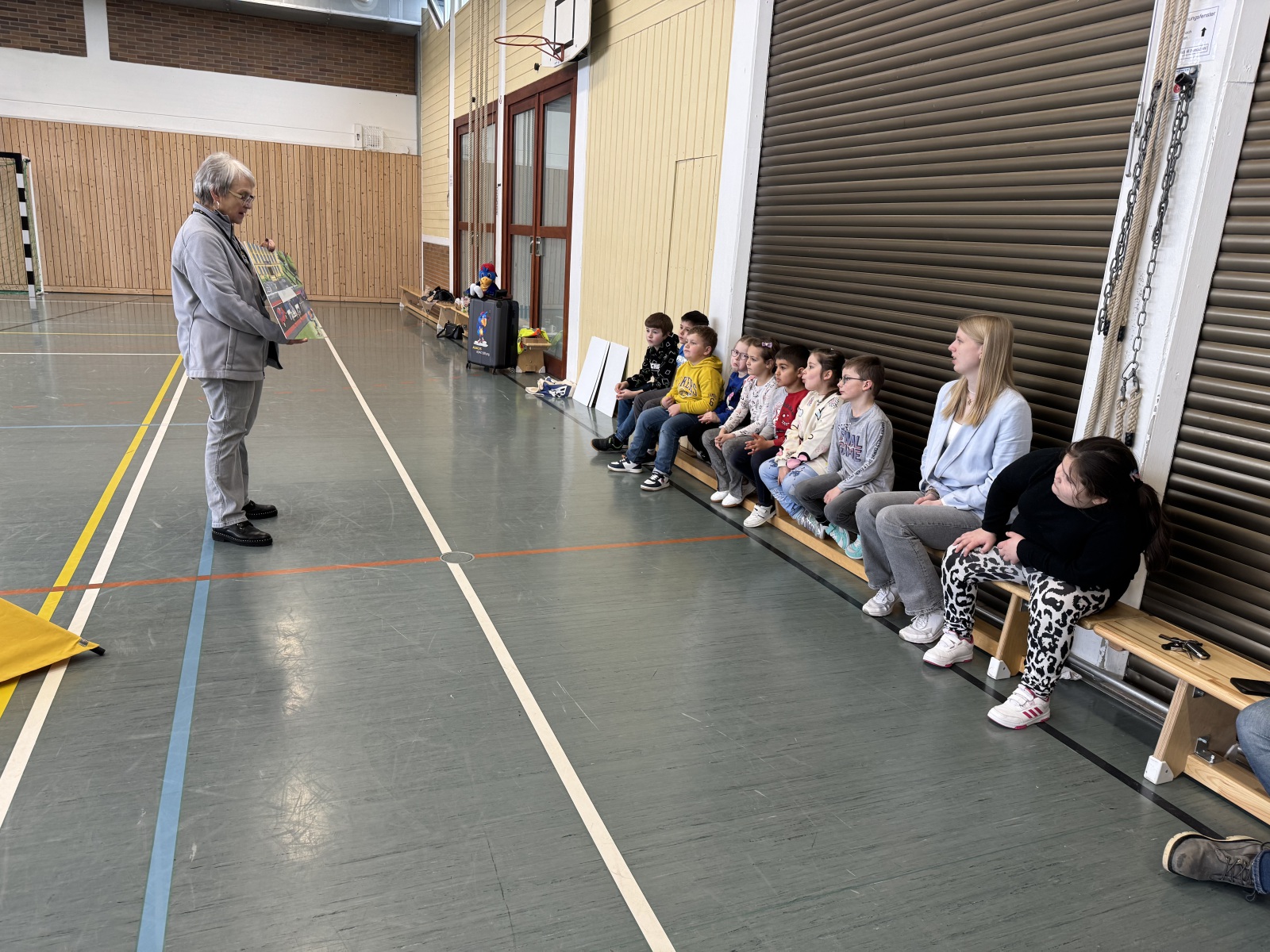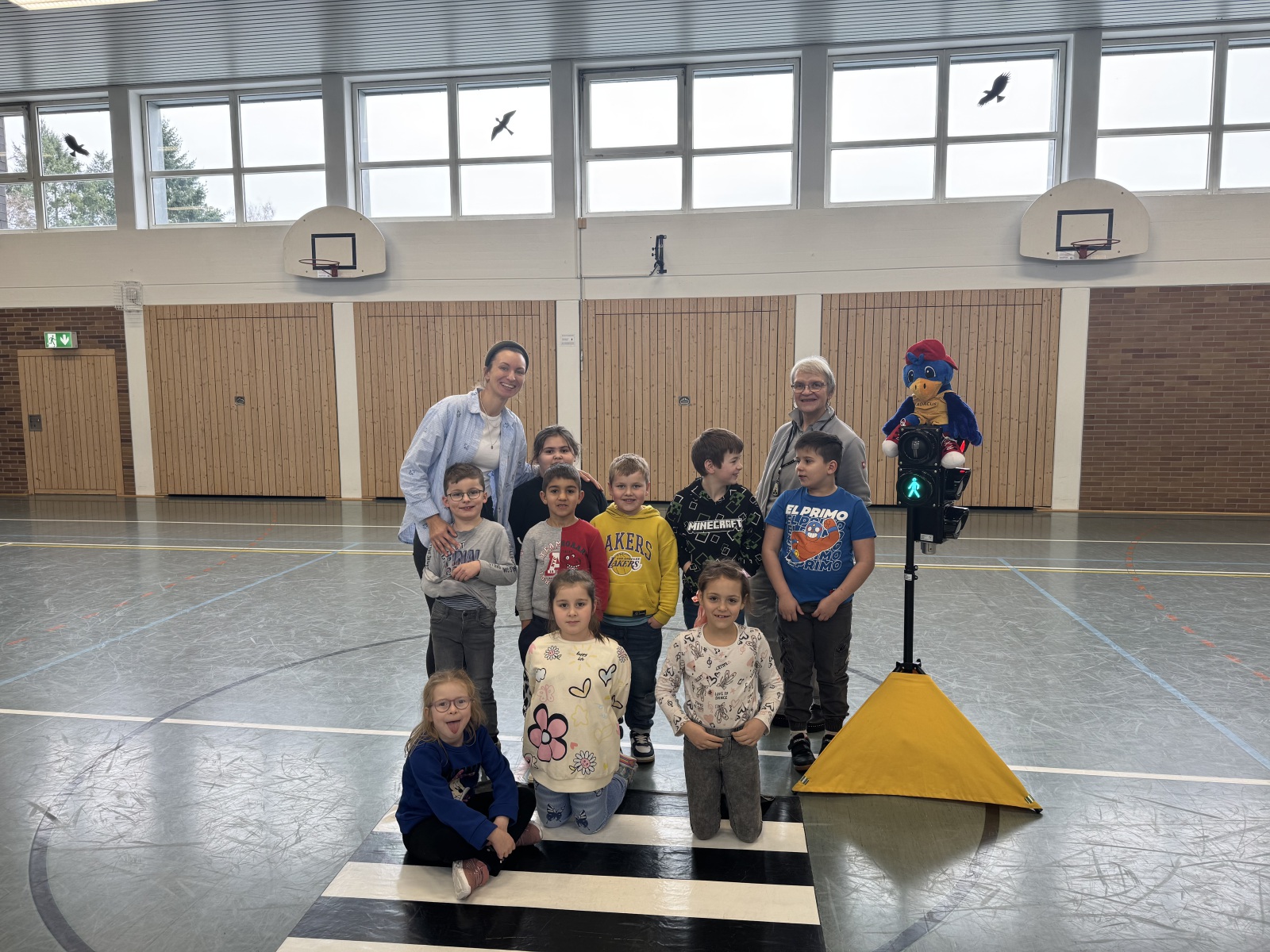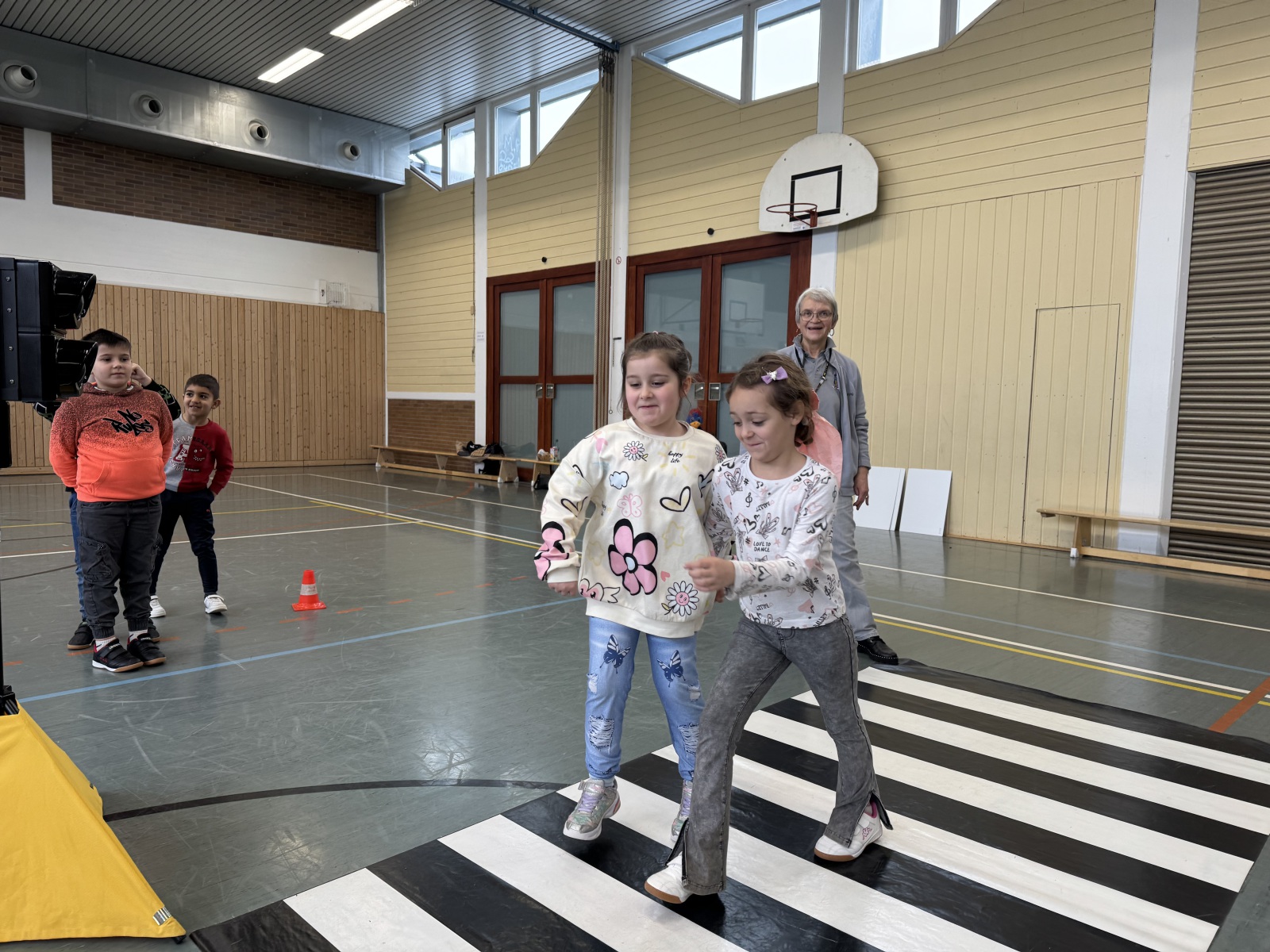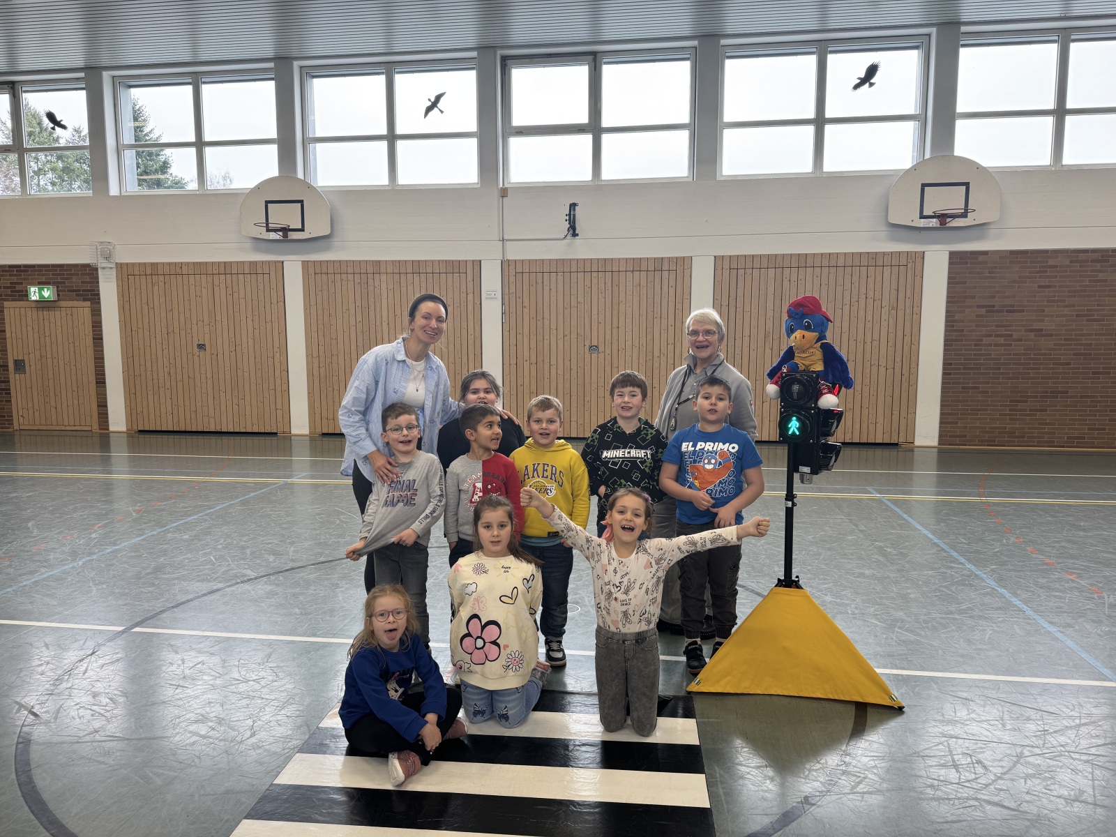Mit viel Bewegung, Freude und interaktiven Übungen zeigte die Moderatorin den Kindern, wie sie sich sicher im Straßenverkehr verhalten.
