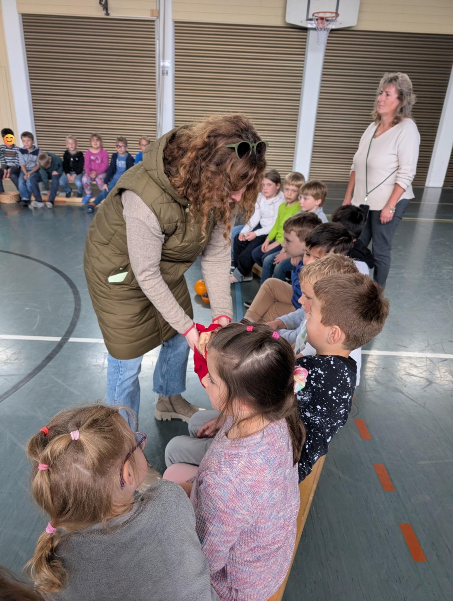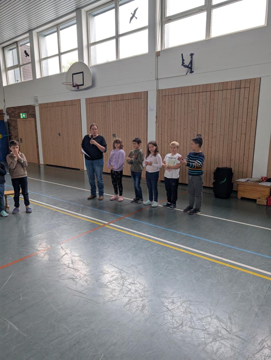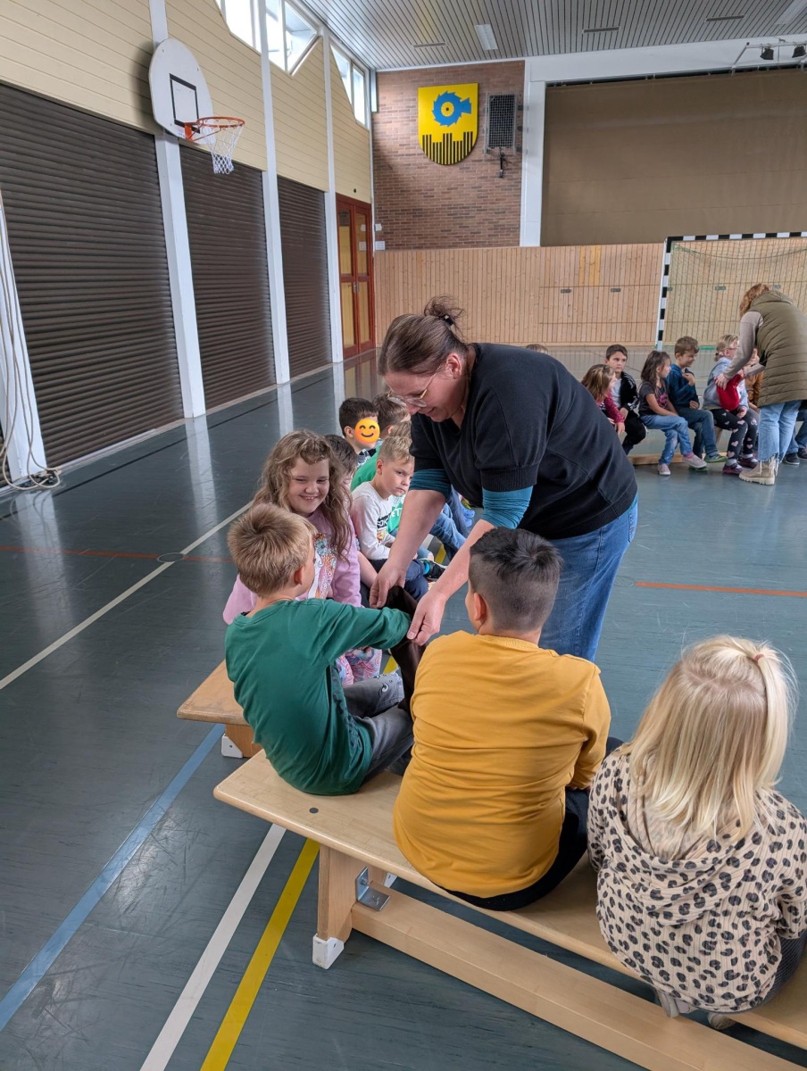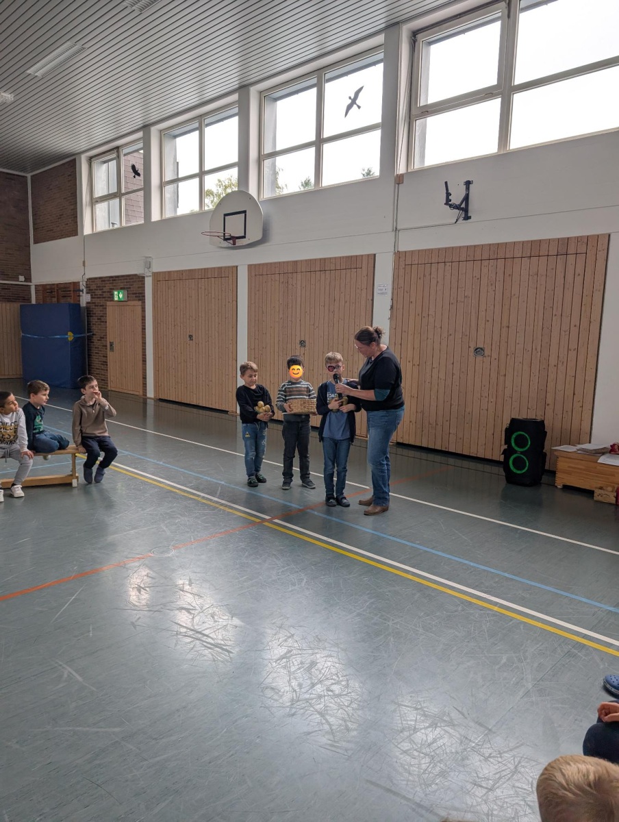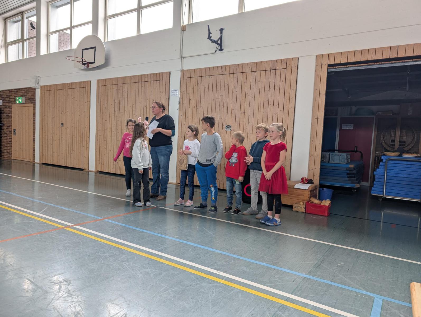 Unsere diesjährige Erntedankfeier stand ganz unter dem Motto „Vom Korn zum Brot“. Die Kinder der Klasse 2b führten uns vor, welche Schritte durchlaufen werden müssen, bis wir am Ende ein Brot im Laden kaufen können. Sie führten uns vor Augen, dass unser Dank nicht nur dem Lieferanten des Brotes oder dem Bäcker oder dem Müller gebührt, sondern auch dem Bauern, der das Korn gesät hat und Gott, der das Getreide hat wachsen lassen. Die Kinder zeigten sich auch dankbar für die Ernte von Obst und Gemüse. Sie brachten Pflaumen, Äpfel, Birnen, Gurken, Kartoffeln und einen Kürbis mit. Die Kinder der Klasse 2a bedankten sich in einem Gebet für die gute Ernte und die Menschen, die bei der Ernte geholfen haben. Wir sangen das Lied „Wenn jeder gibt, was er hat“ und erinnern uns daran, dass wir das, was wir haben, teilen, damit alle satt werden können. Jede Klasse erhielt zum Abschluss unserer Erntedankfeier ein Brot, das sie anschließend, wie im Lied gesungen, geteilt haben.